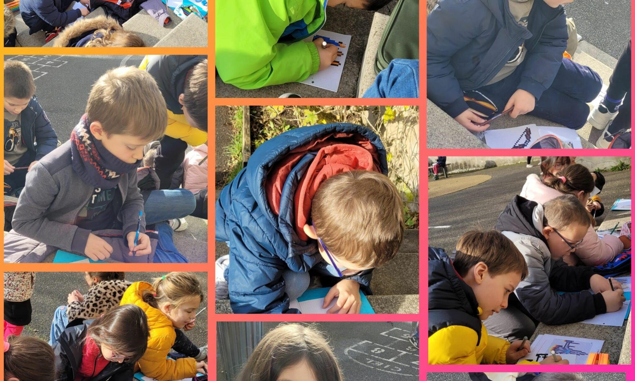 On n’ arrête plus les CE1-CE2 ! Les enfants profitent pleinement des tout nouveaux modèles de pixel art, mis à disposition en classe… Les récrés sont bien calmes ces derniers jours, autour de cette activité qui leur permet de développer leurs aptitudes visuo-spatiales.